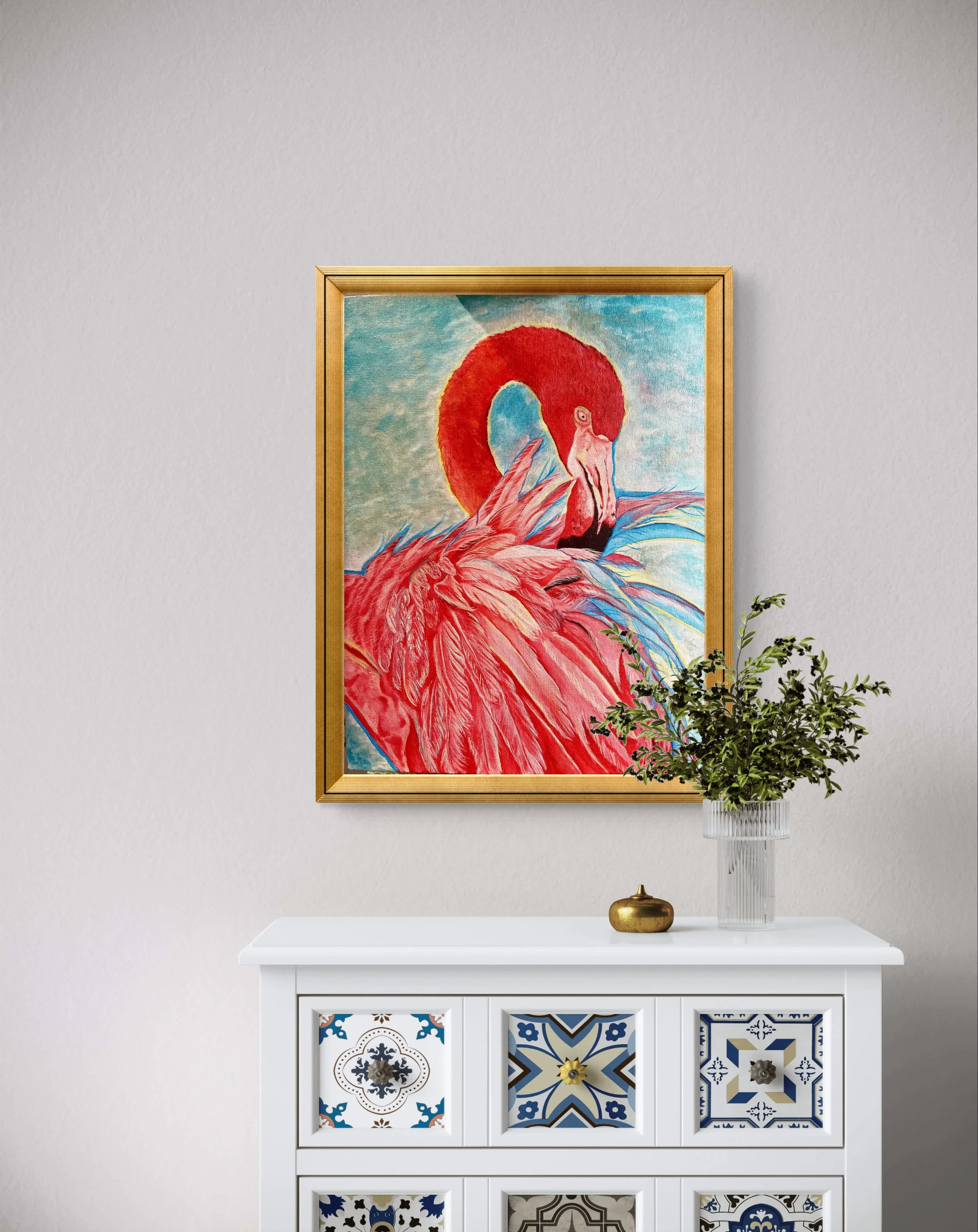 "Luminous Wings" Vibrant and full of life, this acrylic hummingbird painting bursts with color and energy. Featuring thick gold accents, iridescent hues, and a touch of glow-in-the-dark magic, this piece transforms as the light changes, creating a dynamic viewing experience day or night. A perfect addition for those who love bold, nature-inspired art with a touch of whimsy.